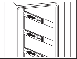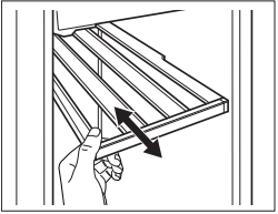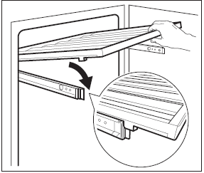 5. Πολλές φορές τραβήξτε το ράφι προς τα έξω και σπρώξτε το πίσω στη συσκευή και, στη συνέχεια, πιέστε το σταθερά προς τα κάτω, για να ελέγξετε αν έχει γαντζωθεί σωστά στις ράγες.